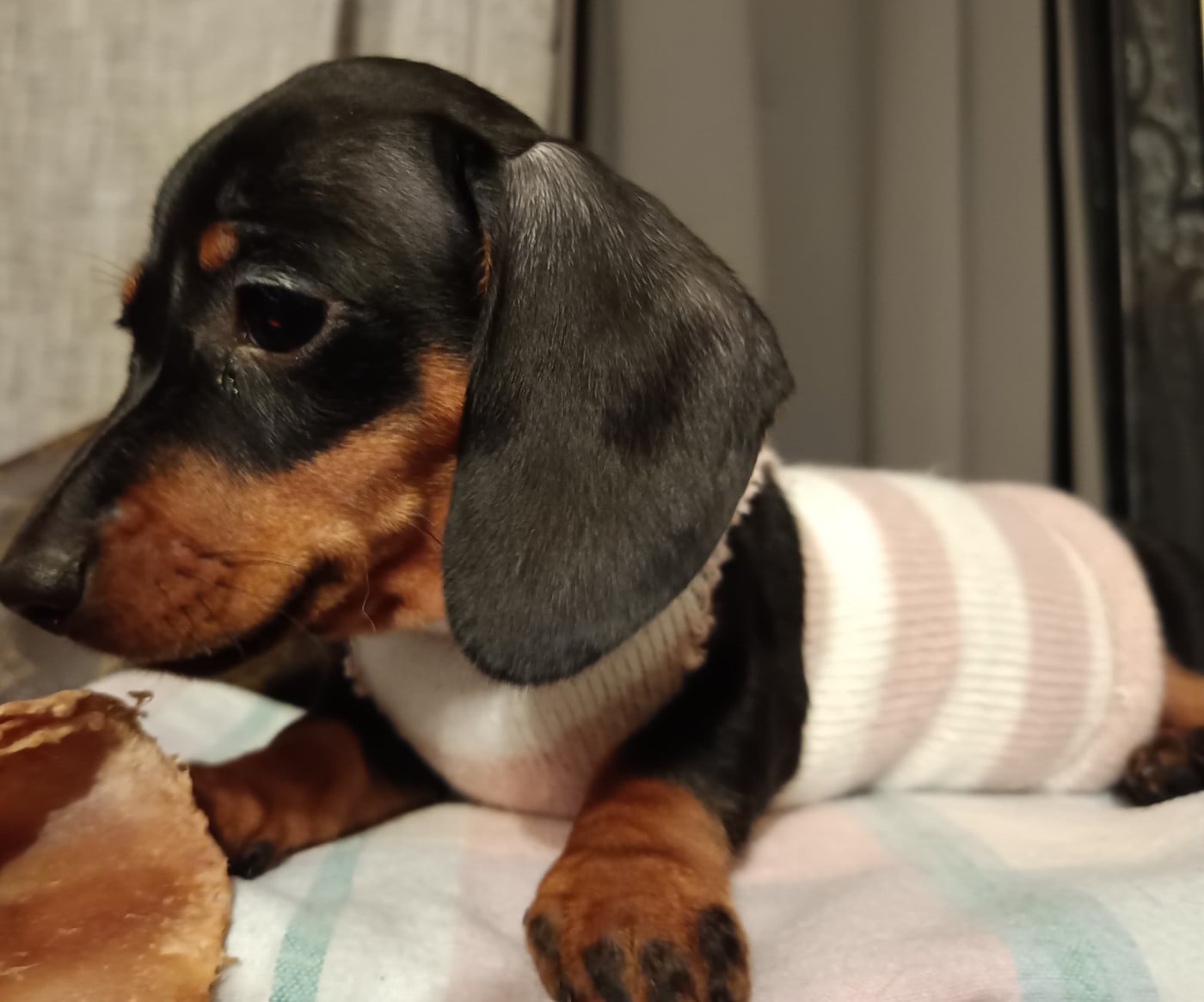 Suite à désistement jolie petite chienne noire et feu, petit gabarit, caractère en or, vive et joyeuse, élevée en famille pour maison 5 etoiles